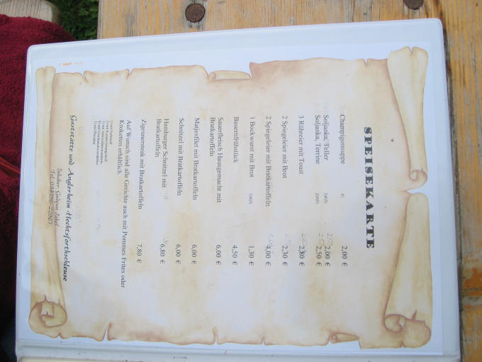 24.7. Das Speisenangebot ("Hoffentlich schmeckt es Ihnen") immer noch übersichtlich und preiswert