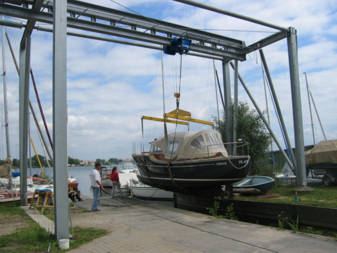 18.7. Nach gut 30km Landfahrt werden wir in Waren in die Müritz gesetzt. Ein perfekter Service von Jens Christen, Chef der gleichnamigen Bootswerft