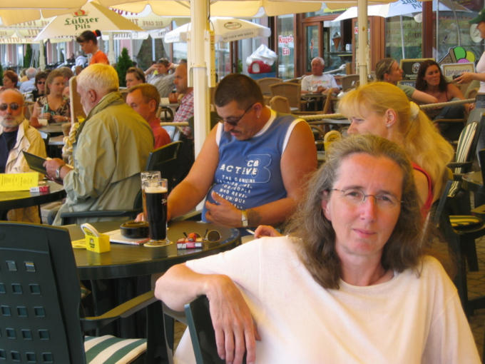 18.7. Reger Betrieb in den Kneipen an der Hafenpromenade in Waren